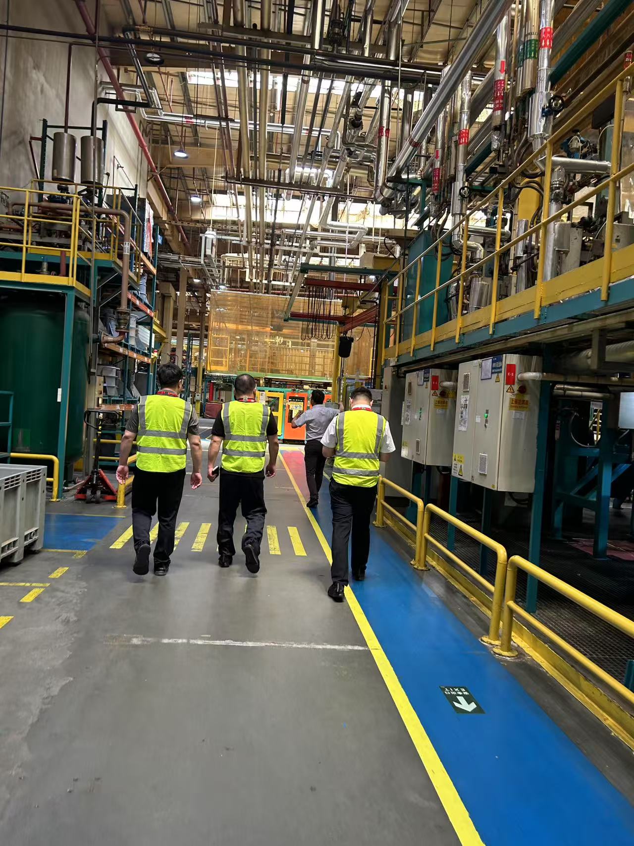 蓋茨帶領太重領導從參觀接待室開始,隨后依次參觀生產車間、各種器械,成品倉庫。并且安排了與員工的互動環節,在每個站點,領導有機會與員工進行面對面交流,了解他們的工作情況和遇到的挑戰。